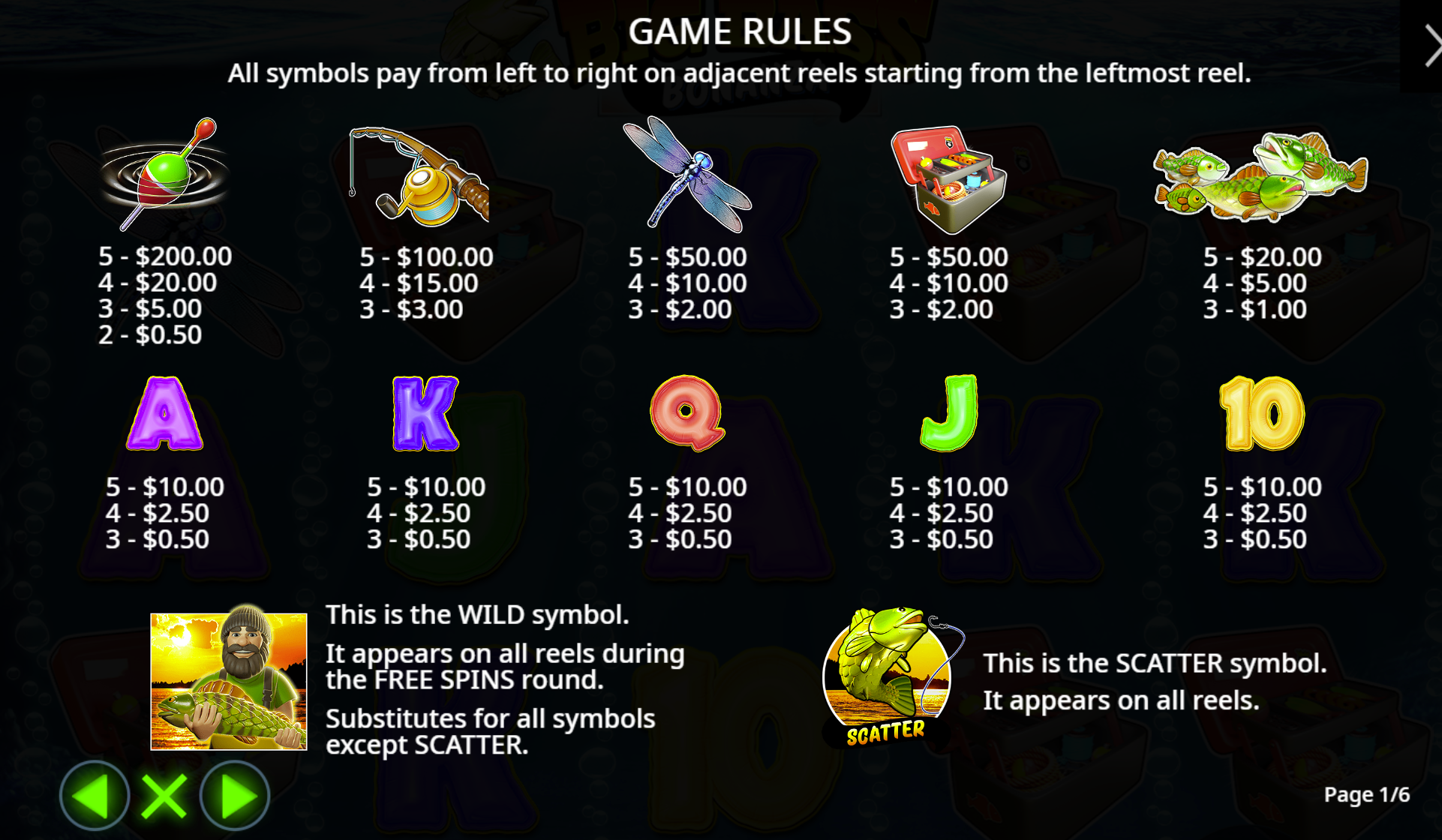 - Casting Wilds Feature: Random base game feature where the fisherman adds wilds to the reels.